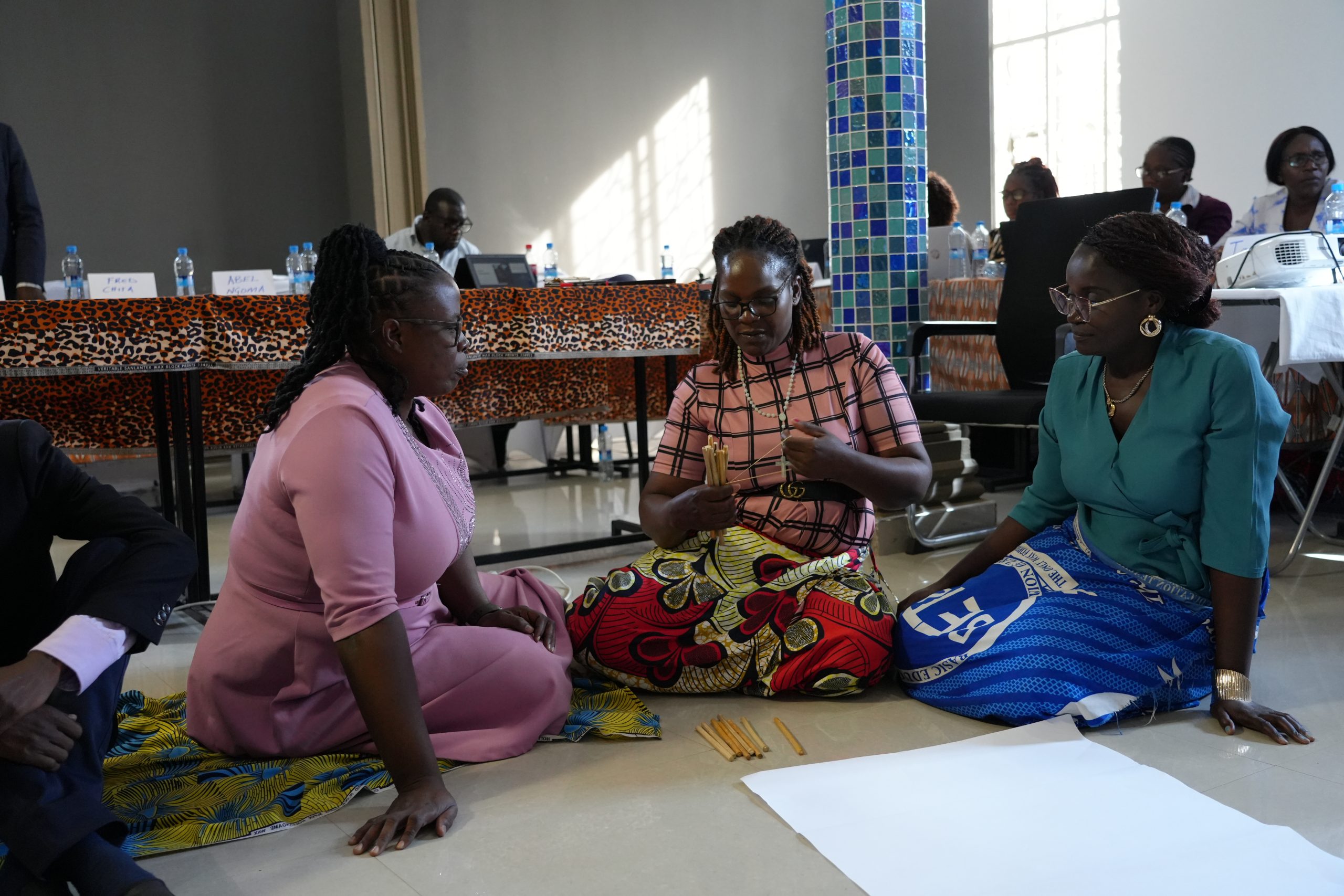 The composition of the workshop reflected this intent. The District Resource Centre Coordinator (DRCC) and the District Education Board Secretary (DEBS) from Luanshya brought direct classroom and school-level realities into the discussion; for example, this collaboration provided critical insights into the assessment systems within the Copperbelt region, specifically highlighting how localized data can be leveraged to refine instructional preparation and improve teacher responsiveness. A representative from the Curriculum Development Centre (CDC) ensured alignment with national curriculum standards and quality assurance processes. The Provincial Education Officer provided a systems lens on implementation and oversight, while National Master Trainers grounded material choices in classroom practice and teacher support. Together, these officials formed the core working group, supported by members of the Catch Up Coordinating Committee (CUCC), the cross-directorate structure coordinating the province’s scale-up.